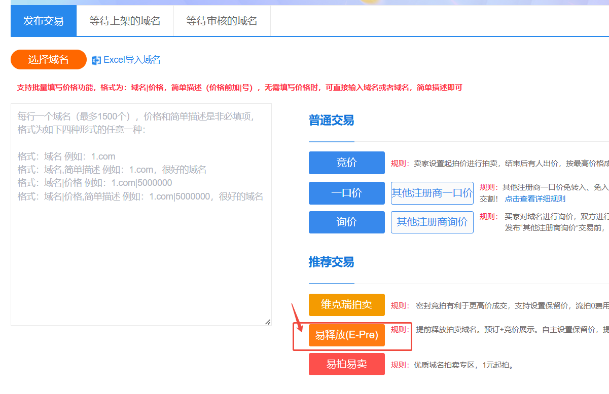易释放(E-pre)类型域名免闯入费